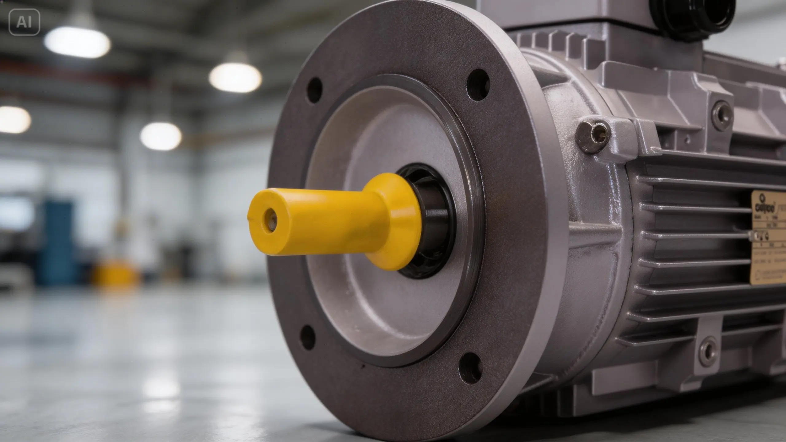 Motore industriale con sensore per la manutenzione predittiva, in un ambiente di fabbrica moderno.